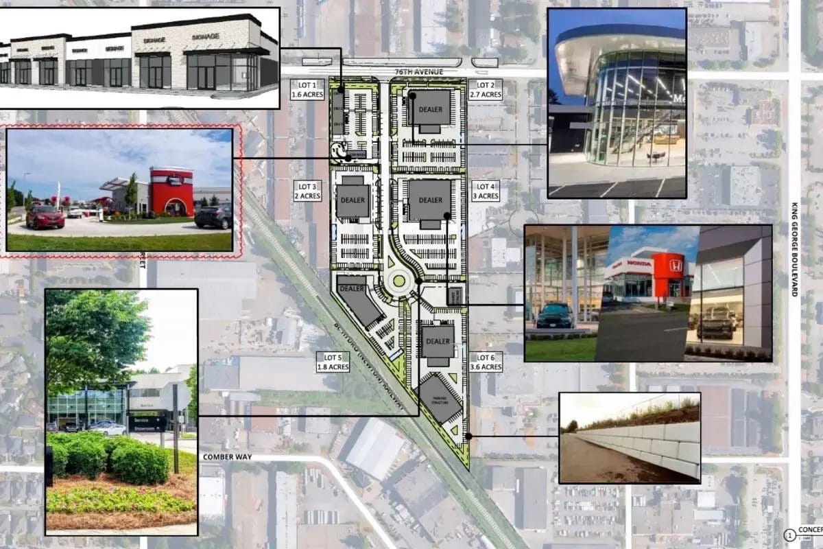 The auto mall would be built on 16 acres near 13340–76 Avenue in Newton